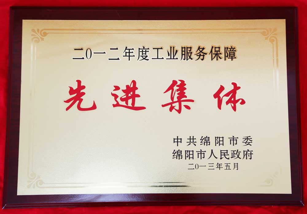 公司榮獲 “綿陽市2012年度工業(yè)服務保障先進集體”稱號、工業(yè)企業(yè)突出貢獻“三等獎”
